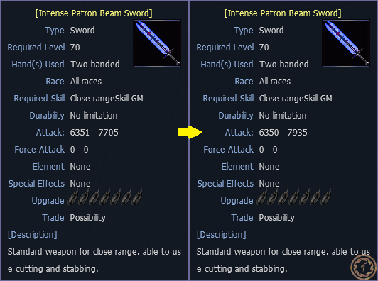 - Unpopular Level 57 ~ 75 Weapons were improved